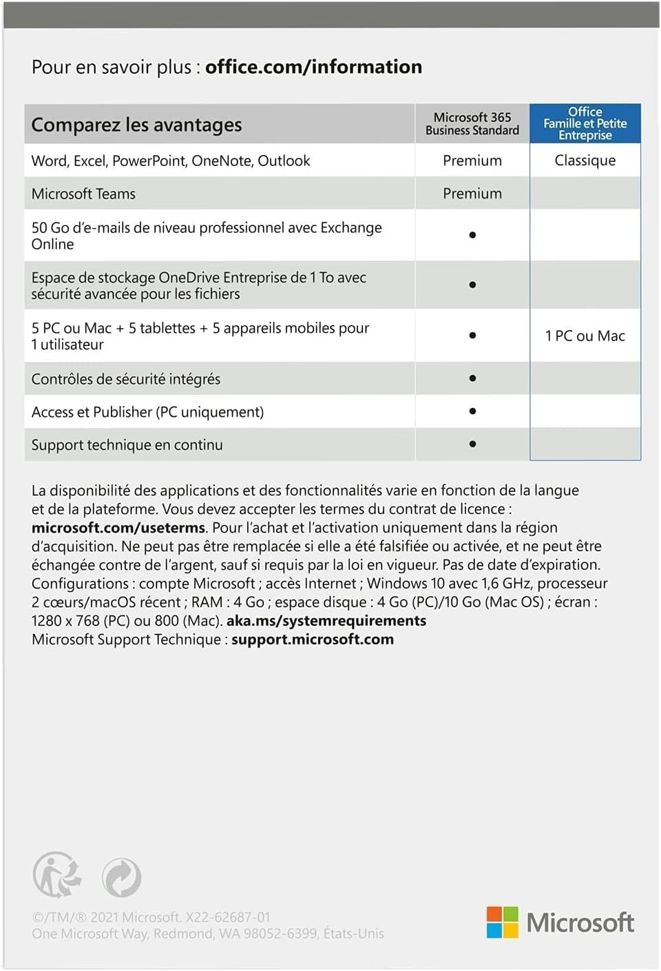 Applications incluses : Word, Excel, PowerPoint, Outlook